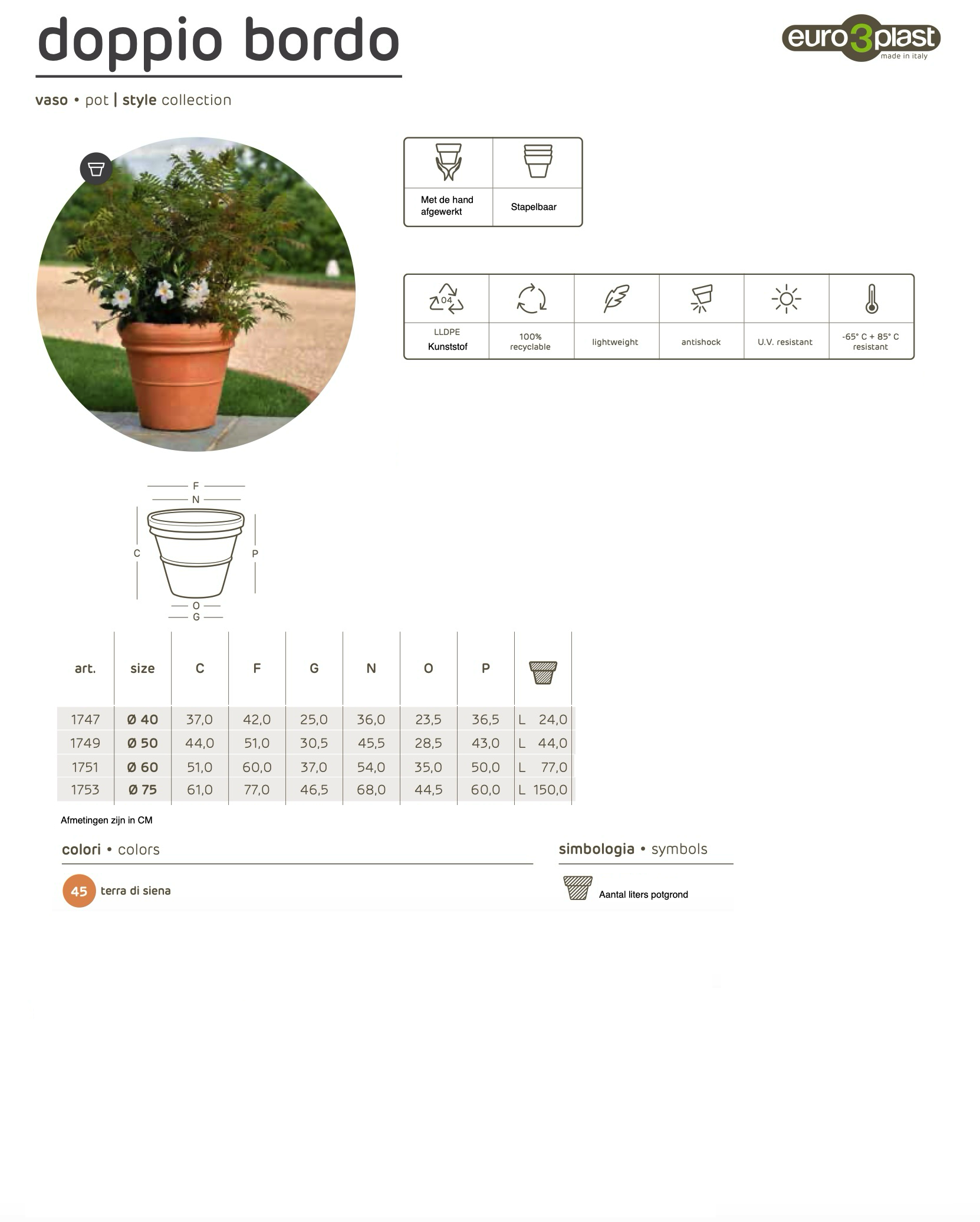 Buitenbloempot Euro3Plast Doppio Bordo Ø51-H44cm terra kunststof