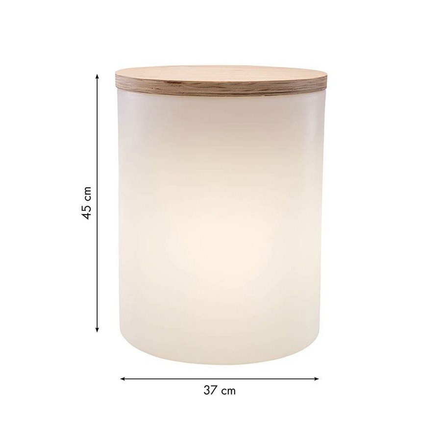 8 Seasons Design Shining drum. Het is een krukje, bijzettafel of plantenbak. Dit multifunctionele ontwerk van het merk 8 Seasons Design is verlicht met een spaarlamp van kunststof en waterdicht (IP43). De shining drum heeft een hoogte van 45 cm en een doorsnede van 37 cm. Wilt u de shining drum als plantenbak gebruiken dan heeft deze een inhoud van 10 liter.